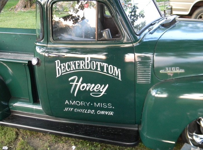 Distressed lettering on a truck