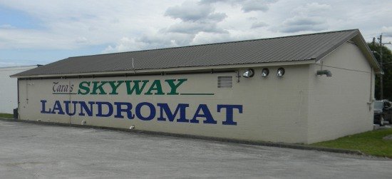 Painted sign on concrete block building In Tellico Plains Tennessee.