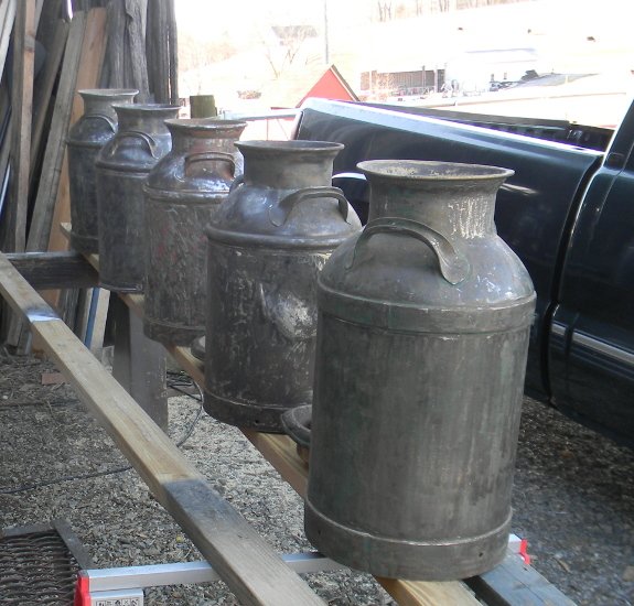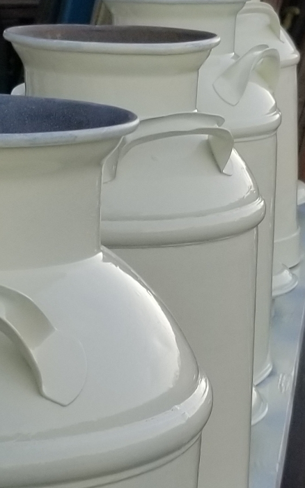 Painting 10 antique milk cans for Cruze Farm Dairy